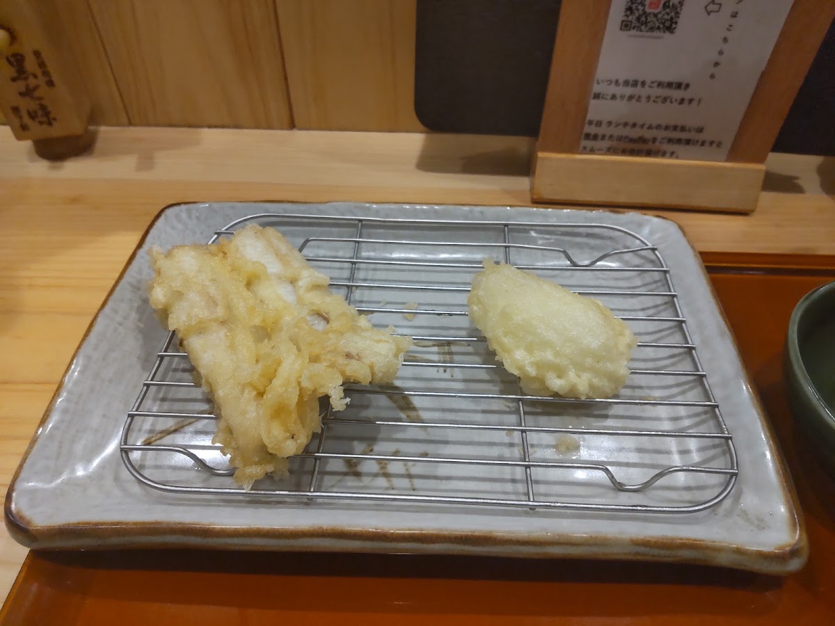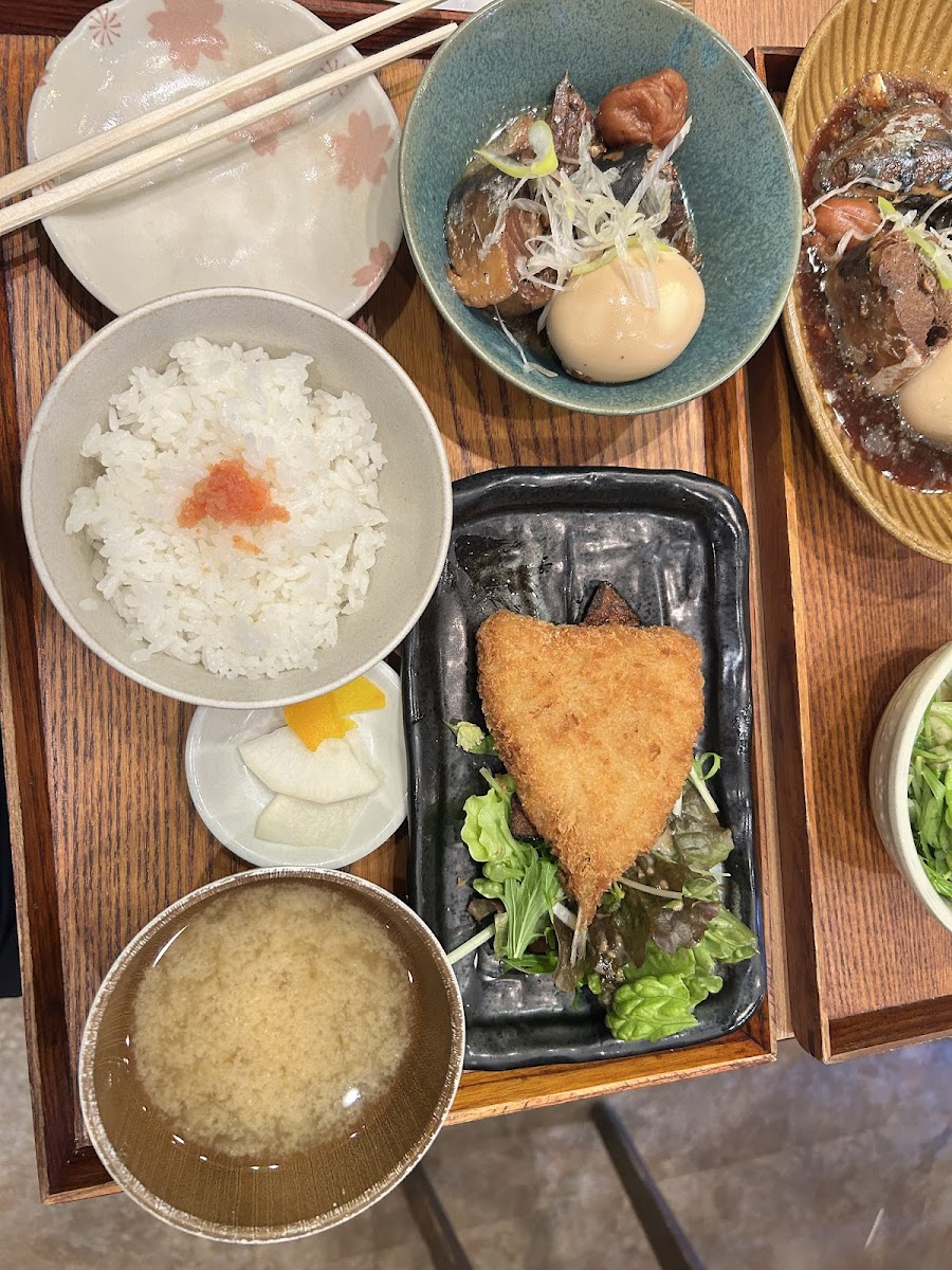 For those looking for something hearty and comforting, the さば黒煮とアジフライ定食 (grilled mackerel with fried horse mackerel set meal) is a popular choice. This dish pairs two delicious fish preparations-richly flavorful mackerel and crispy fried horse mackerel-creating a perfect harmony of textures and flavors. If you're a fan of tempura, the 穴子の天麩羅 (fried eel tempura) is a delightful treat, featuring tender eel wrapped in a crispy, golden batter that’s both savory and light.